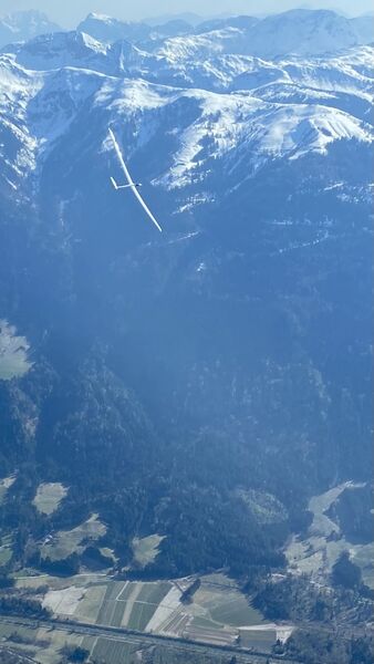 "Interessanter Übergang vom dynamischen Flug zur Thermik. Die blaugrauen Flächen sind Photovoltaikfelder."