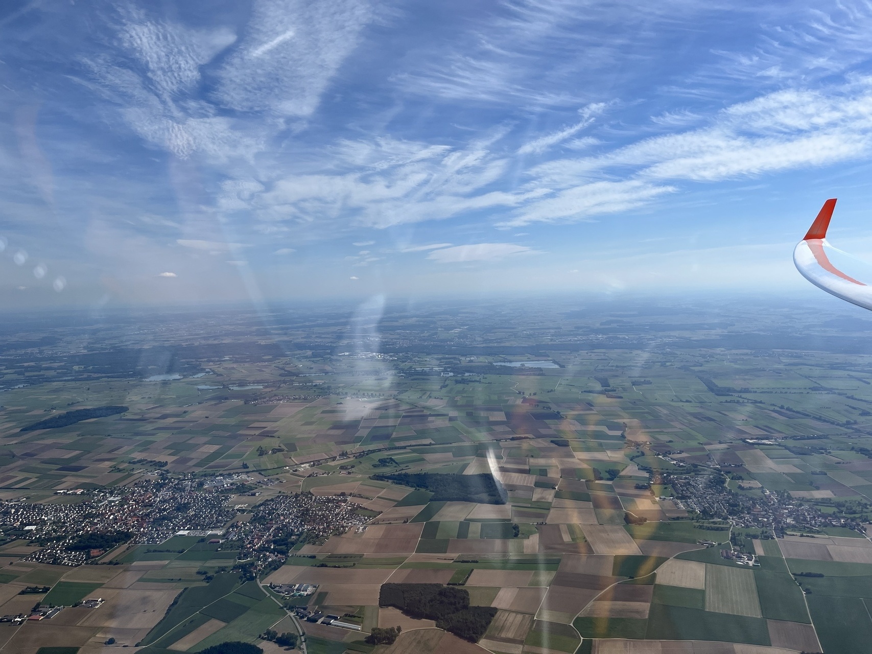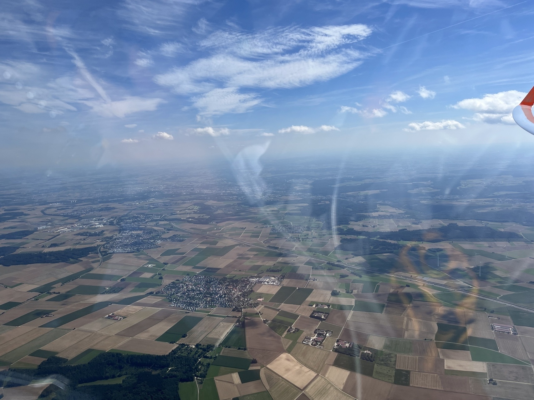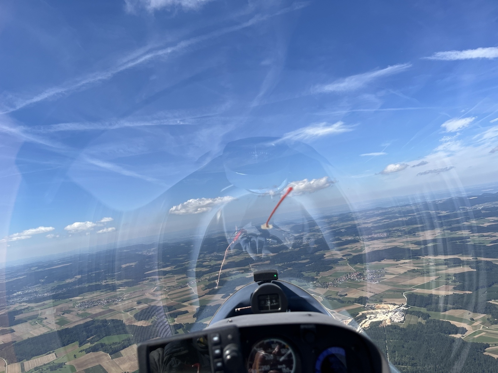 Sei's drum - es ging im Blauen nach Norden. Am Pfänder standen ein paar Wölkchen, die aber nicht richtig zogen. Offenbar war da die tote Luft aus dem Rheintal noch ins Alpenvorland eingeflossen. In Wangen dann ein Bart im Blauen - in mehreren Etappen gings mal bis auf 1400m rauf. Die nächsten Wolken standen dann kurz vor Ravensburg, ab da gings dann eigentlich recht gut bis zur Alb. Zwischen Albstadt und Blaubeuren sehr gut, mit Aufreihungen und guten Steigwerten. Danach Richtung Osten eher zäh, und ab Günzburg Richtung Heimat nur blau. Und die Bärte wesentlich schwächer - ich hätte wohl doch besser wiedrer über die schwäbische Hochebene zurückfliegen sollen. Kurz vor Mindelheim und dann nochmal auf dem Weg nach Kempten musste dann auch nochmal der Motor die nicht gefundene Thermik ersetzen.