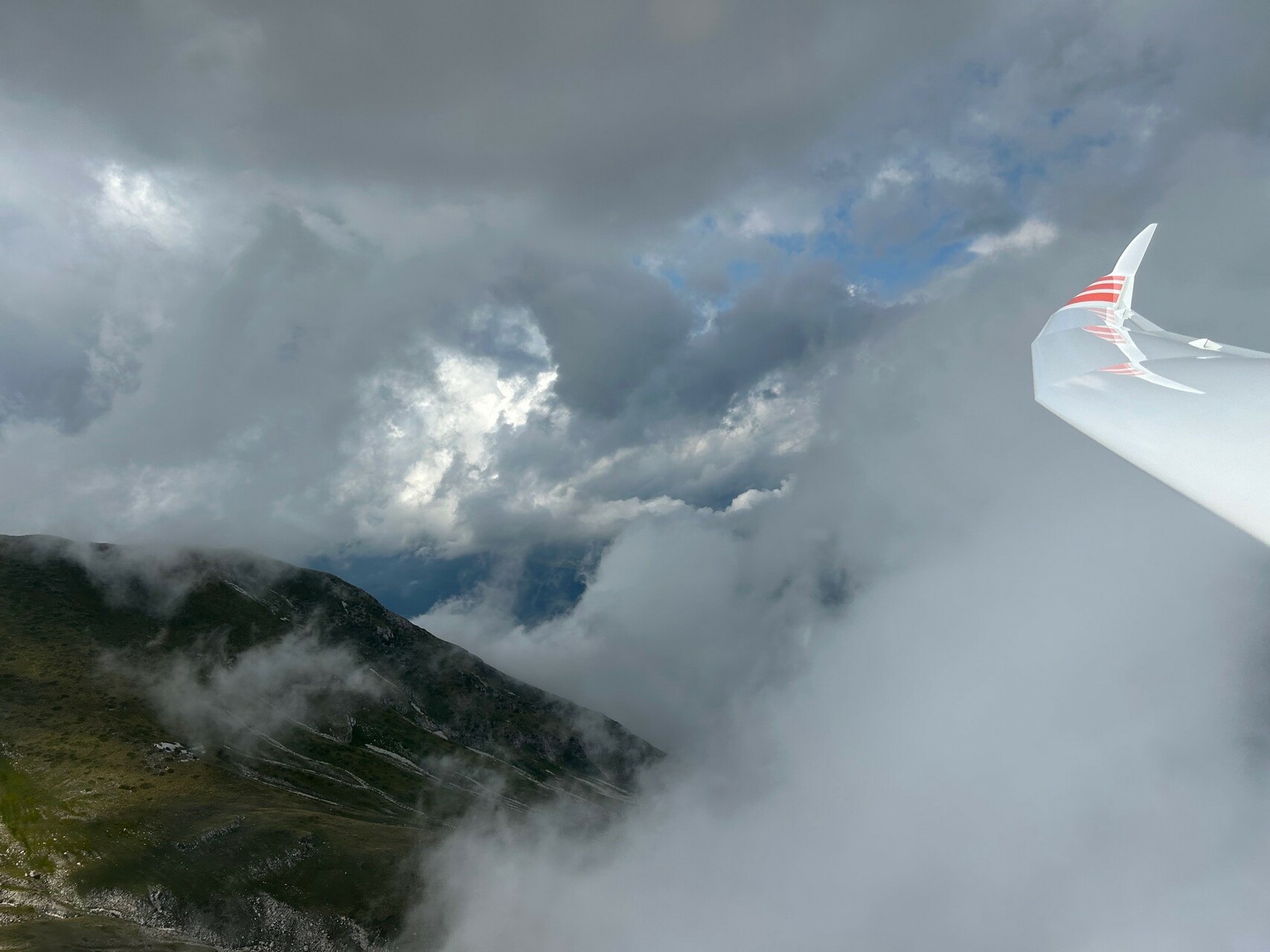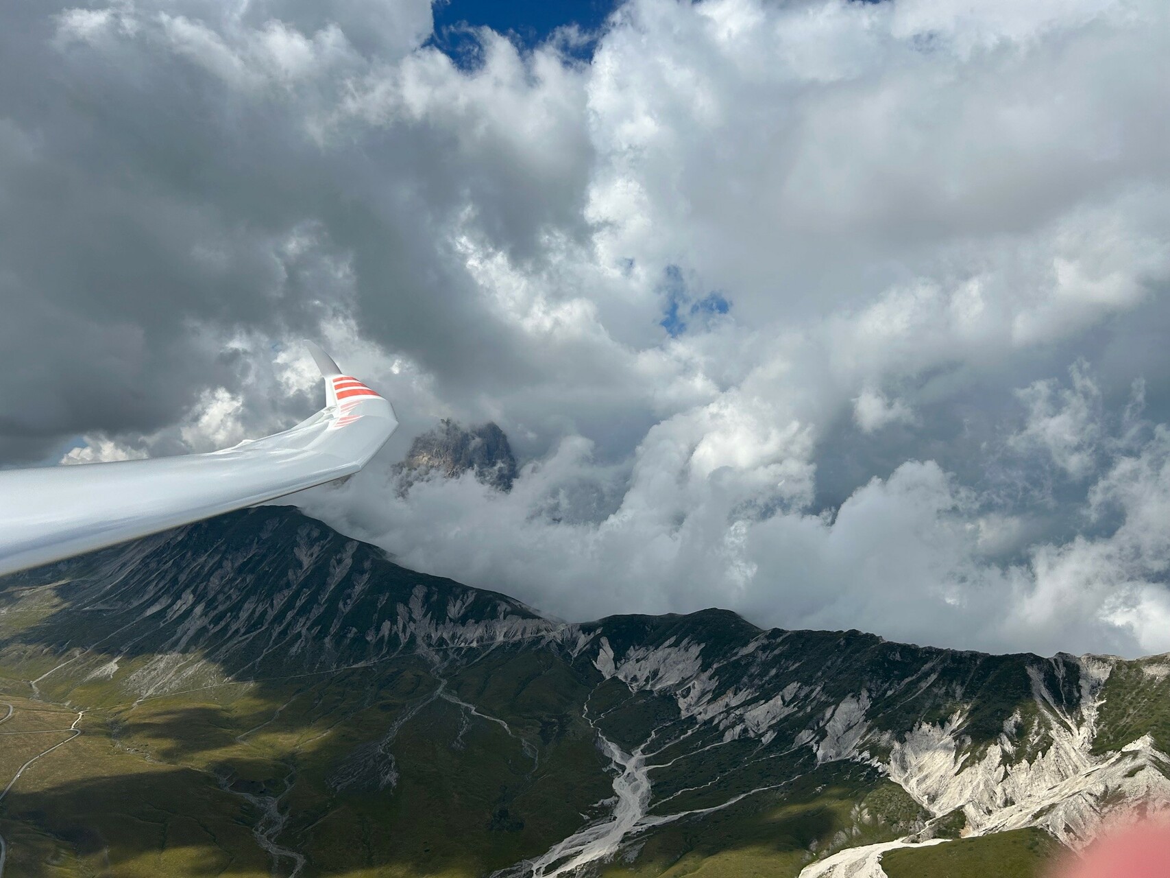 Christian mit Copilot Jonas flog am 26. August in einem Segelflugzeug der Type "Arcus" 401 Kilometer. Er startete um 10 Uhr 44 am Flugplatz Palazzolo Avio - Sansepolcro. Sein Segelflug führte ihn nach Sansepolcro (Italien), dann nach Assergi, Castel del Monte, Cabbia, Santa Maria in Valle, Sigillo und Sansepolcro. Nach 4 Stunden 37 landete er in Palazzolo Avio - Sansepolcro.