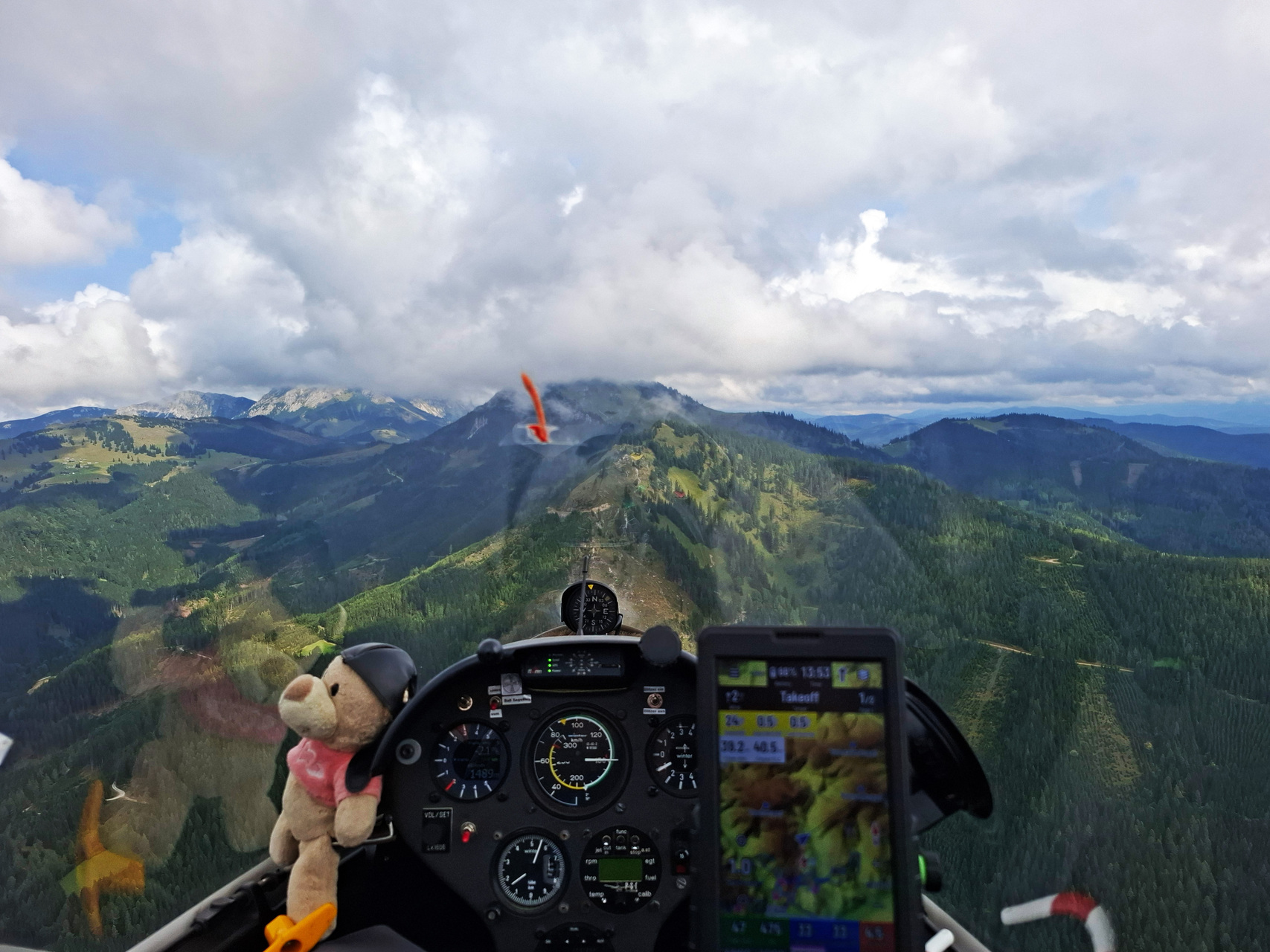 Seit langem wieder in Lanzen Turnau zu Gast - vielen Dank! Perfekte Trainingsbedingungen wobei der Spielraum lateral leider auch sehr begrenzt war. Sehr interessant war jedenfalls wie sich das Windfeld pro Meter Richtung Osten verstärkt hat. Im Bereich Turnau und westlich marginal, Rauschkogel reichte schon zum Aufsoaren und ab Veitsch ging es schon schön dahin.