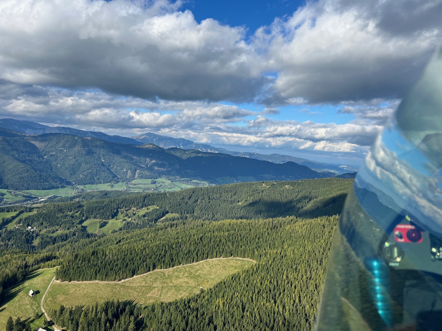 Exakt wie in XC-Therm vorhergesagt war's im Mürztal am besten. Durch den zügigen NW-Wind (der interessanterweise am Ötscher so schwach war, dass dieser kaum im Hangwind ging) bildeten sich immer wieder Linien NNW-SSE. Am späten Nachmittag dann noch verstärkt durch eine Konvergenz, ich nehme an verursacht durch die Ostkomponente im Wiener Becken. Richtig interessanter Flug :-)