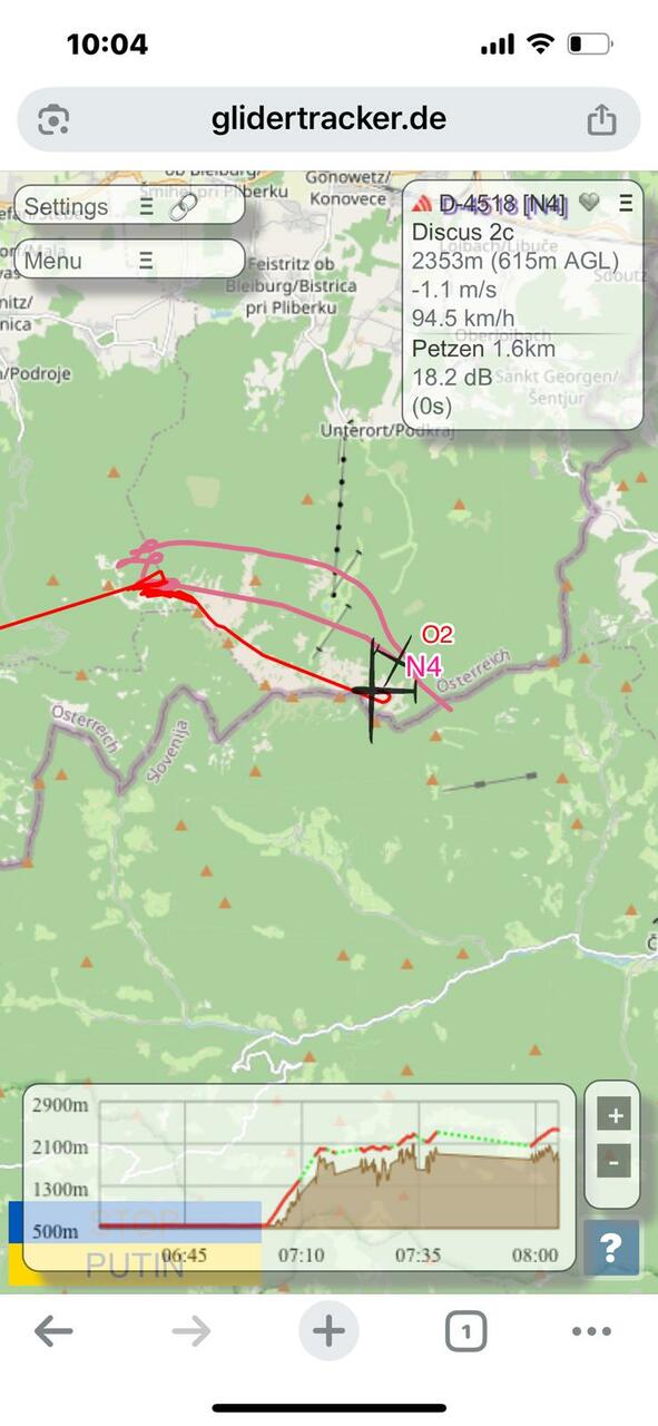 Wolfgang flog am 7. Oktober in einem Segelflugzeug der Type "Discus 2 18m" 126 Kilometer. Er startete um 7 Uhr 13 am Flugplatz Nötsch. Sein Segelflug führte ihn nach Goritschach in Kärnten, dann nach Neumarktl (Slowenien), Wildenstein, Unterort, Unterloibl, Görtschach und Göltschach. Nach 1 Stunde 33 landete er in Ferlach Glainach.