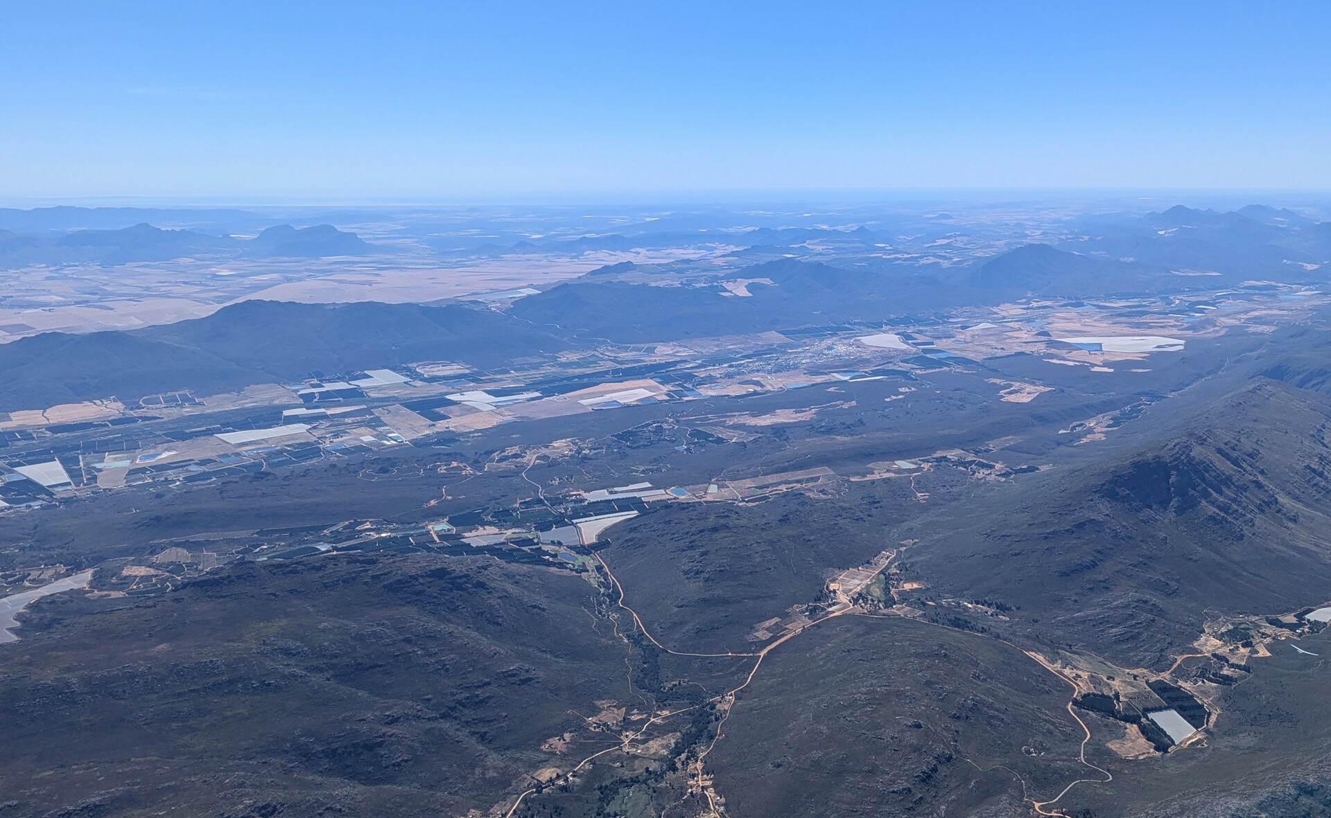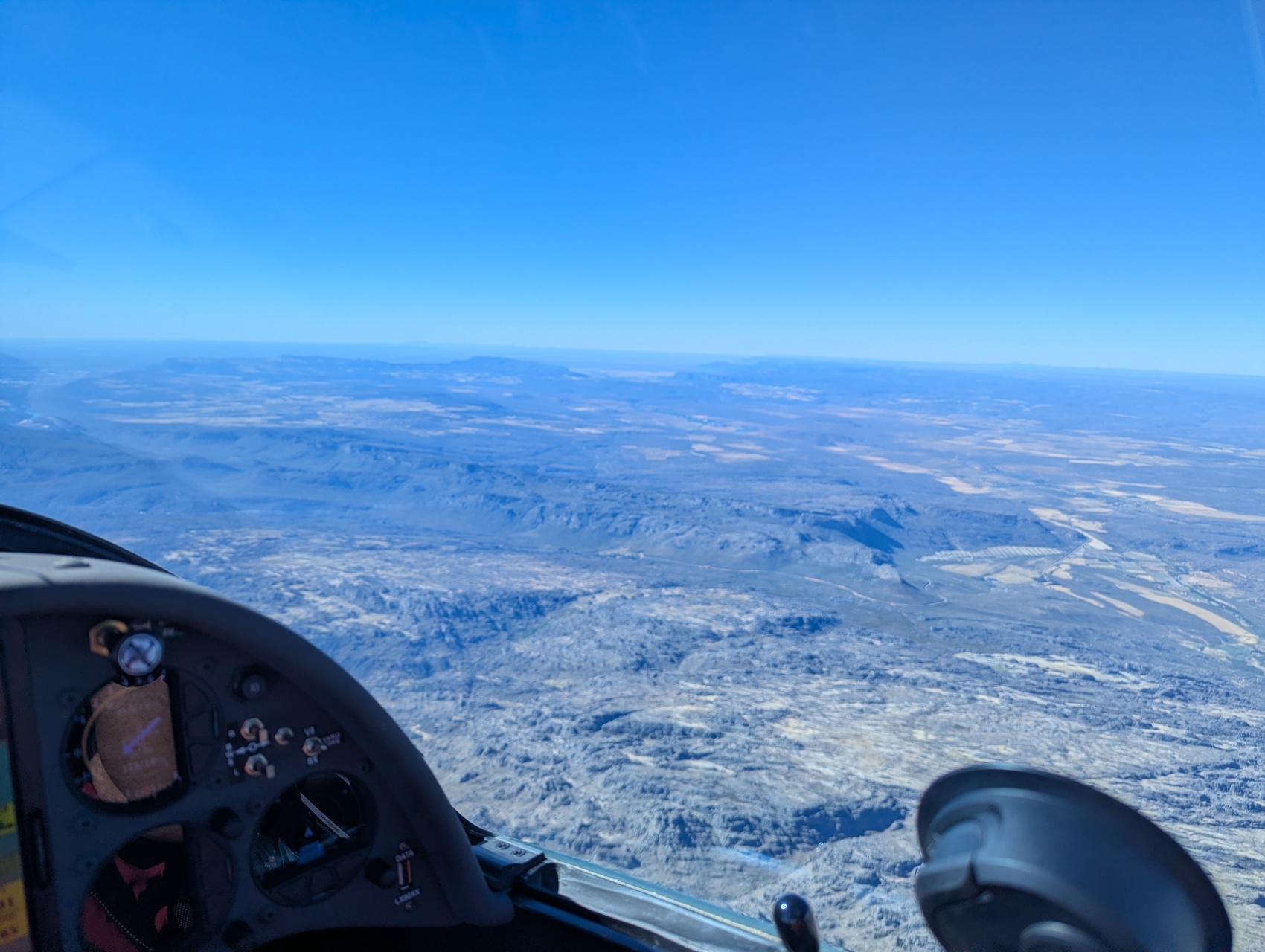 Endlich mal nach Norden, allerdings thermisch und nicht dynamisch da der Wind viel aus Norden kam. Erst ging es etwas zäh weg, dann aber recht gute Basis im Blauen. Zum Abschluß nochmals einen kurzen Abstecher im Wind nach Osten. Nach der Landung tobt derzeit am Abend ein heftiger Buschbrand im südlich Teil des Flugplatzes, nicht schön :-(