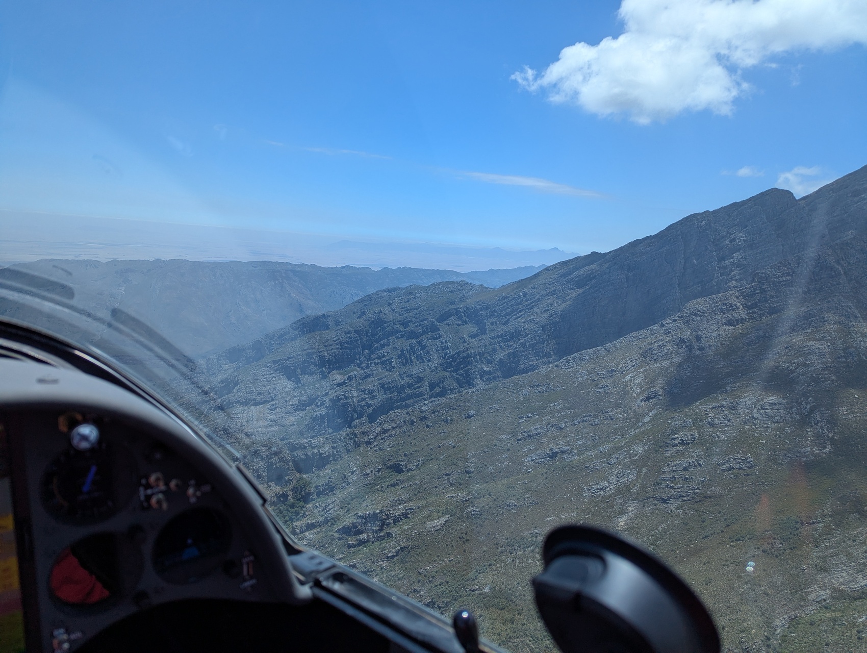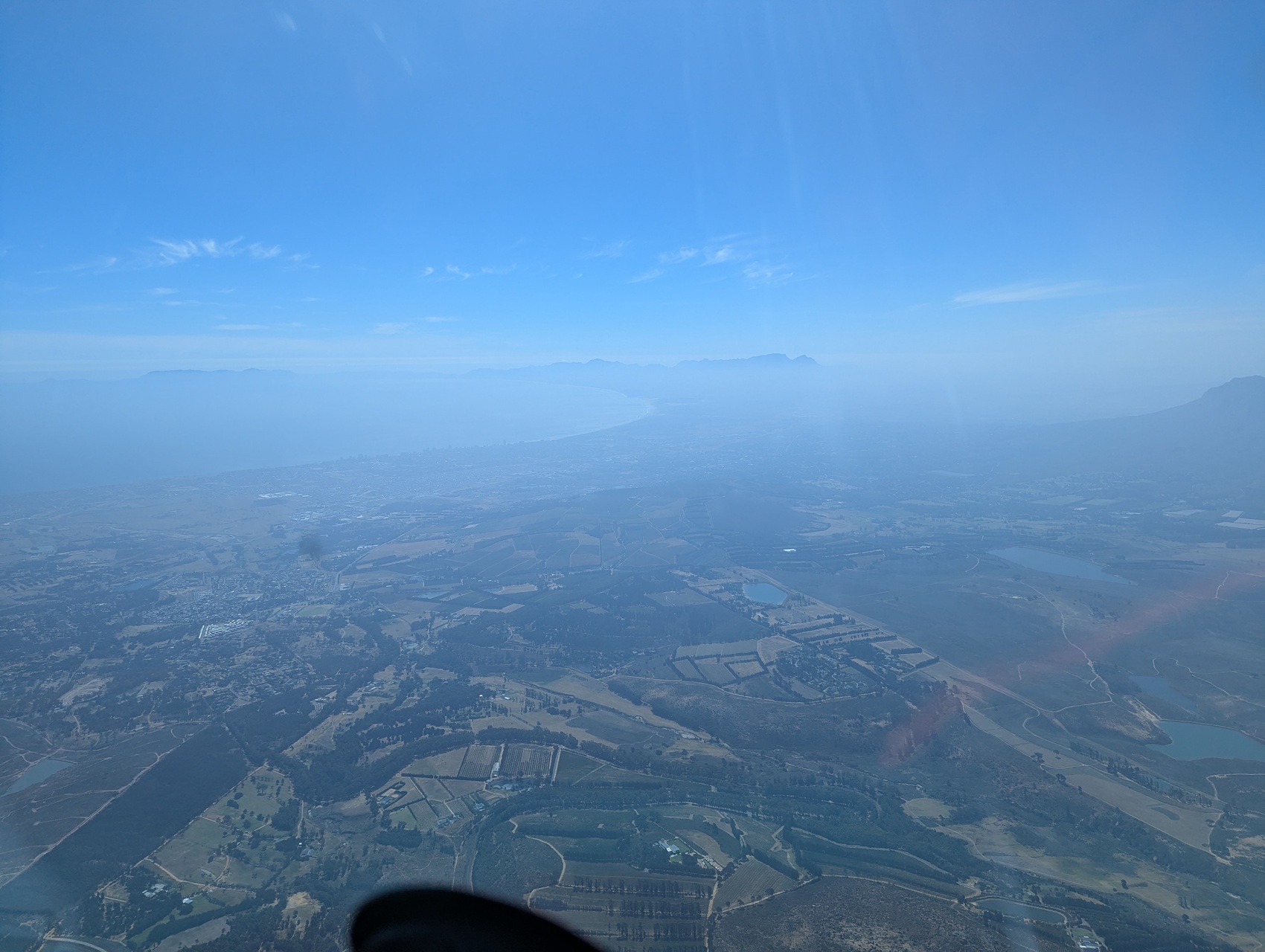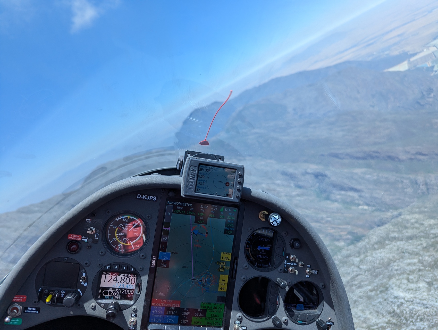 Es scheint sich die Großwetterlage in SA langsam umzustellen. Erstmals Start auf der 33 nach Westen. Dann haben wir das Leg in den Norden wegen unzuverlässiger Steigwerte abgebrochen und statt dessen den Süden erkundet. Unser erster Flug in den Süden fast zur FalseBay bei Kapstadt war toll !