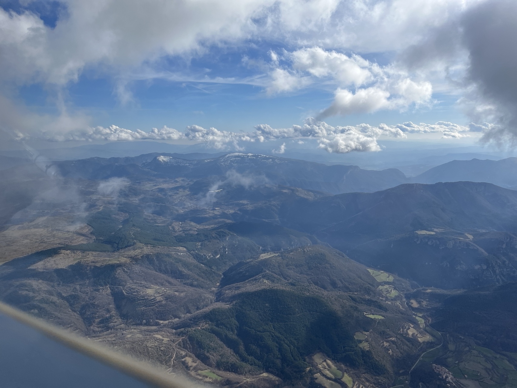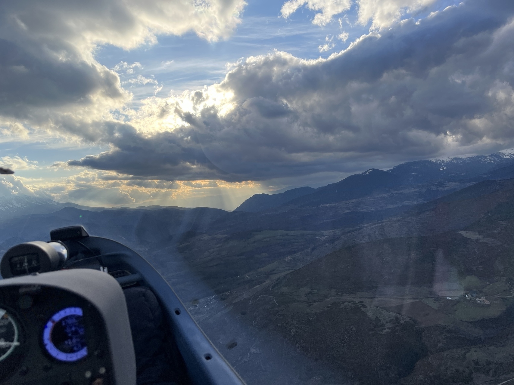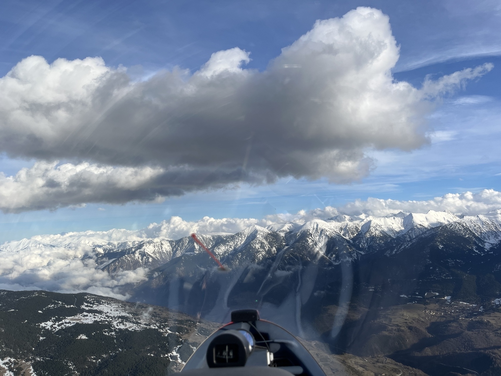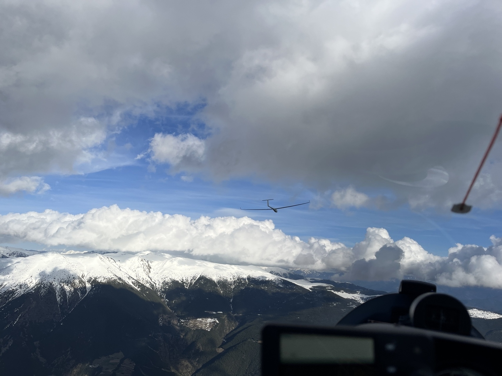 Spät gings los, und dann brauchte ich wg. Batterieproblemen auch noch einen F-Schlepp. Aber trotzdem ein lohnenswerter FLug, kräftiger Westwind und zerissene Thermik, im Westen dann absinkenden Basis auf 2.300m.