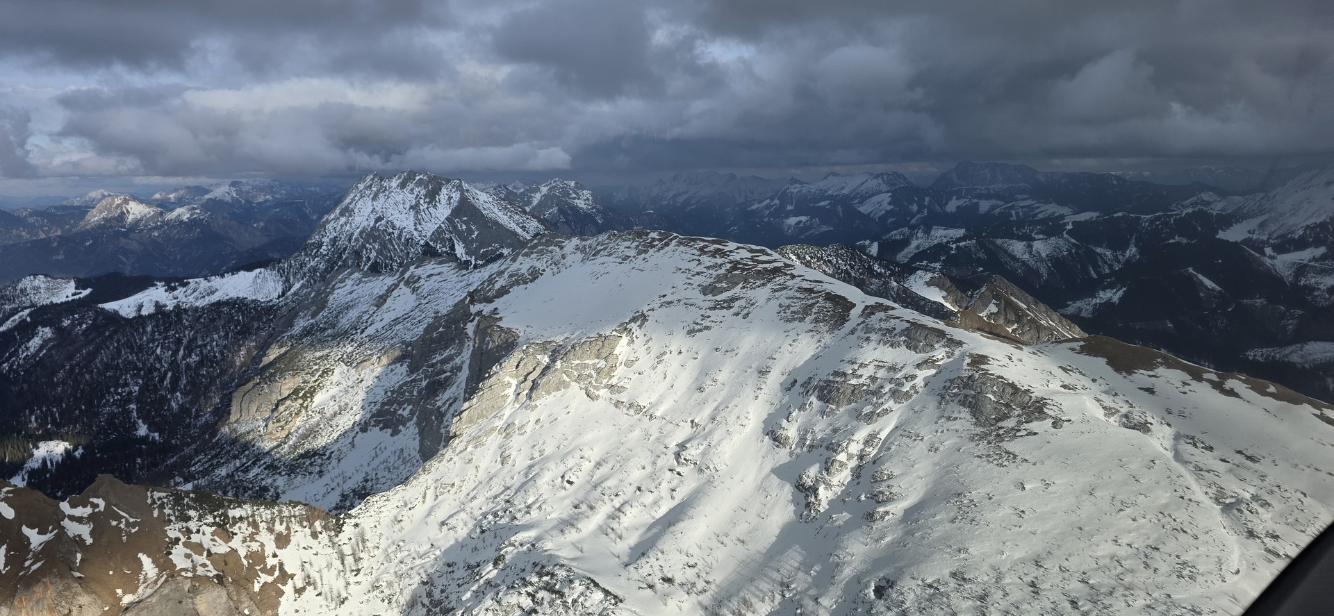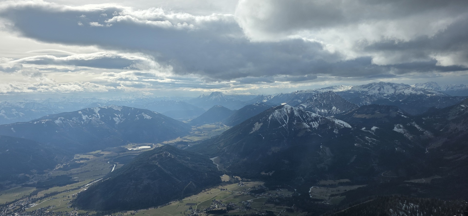 Das begrenzte Windfeld im Osten vom Schneeberg bis kurz vorm Dachstein hat sogar von unten raus recht gut funktioniert, hinterm Hochschwab gab's auch eine gute Welle, die aber nach oben hin stark begrenzt war. Ab Dachstein dann phasenweise nur noch im oberen Bereich brauchbarer Wind, dafür aber auch ansprechende Frühjahrsthermik. Der gemeinsame Hangflug mit Heimo aus Mariazell, über viele spannende Stunden, gab dem ganzen nochmal ein Sahnehäubchen :).