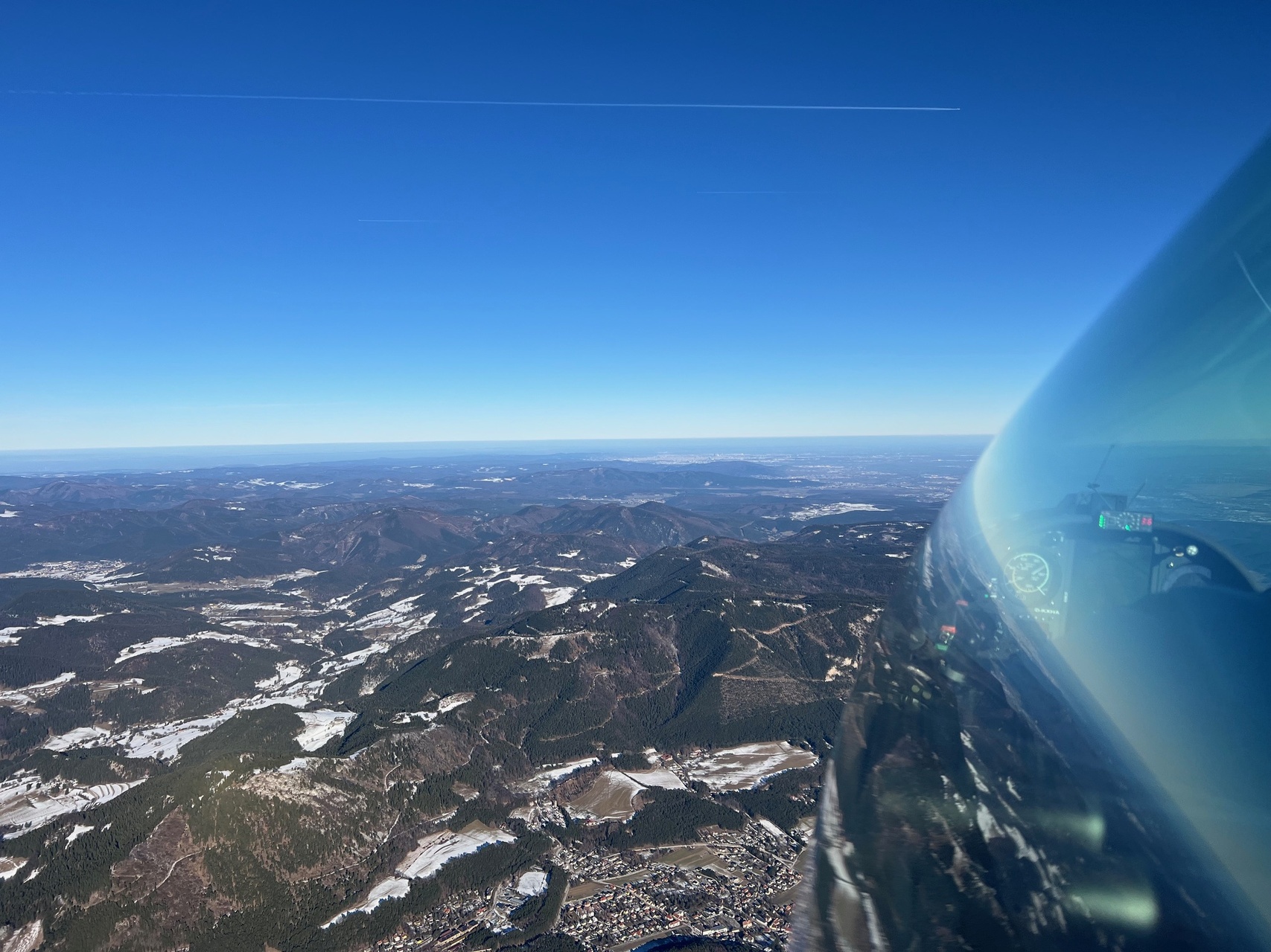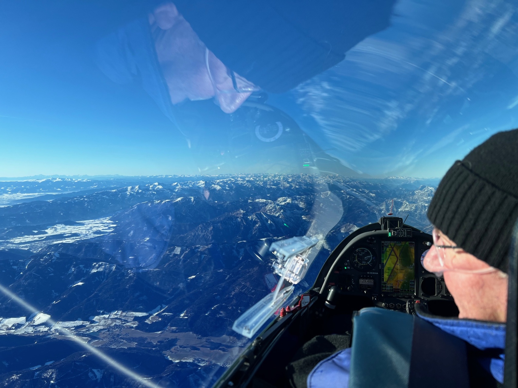 Wolfgang mit Copilot Hermann flog am 29. Dezember in einem Segelflugzeug der Type "Arcus M" 252 Kilometer. Er startete um 7 Uhr 43 am Flugplatz Wr Neustadt West. Sein Segelflug führte ihn nach Winzendorf in Niederösterreich, dann nach Unterhöflein, Netting, Trofaiach in Steiermark, Vordernberg, Seckau und Bad Fischau in Niederösterreich. Nach 3 Stunden 42 landete er in Wr Neustadt West.